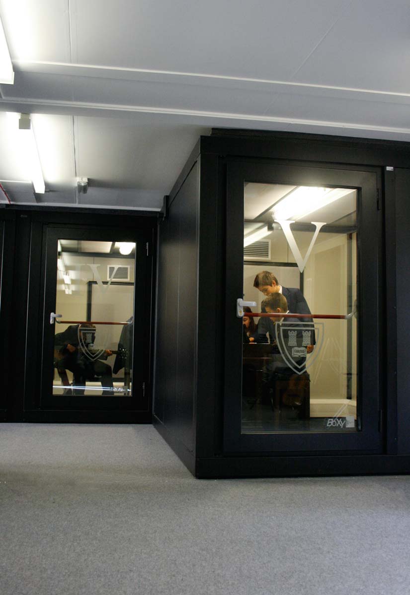 The Bedstone College music department rightly stands as an object of prestige. Excellent sound-insulation, brilliant acoustics, efficient low-noise ventilation, generous glass surfaces. All this makes BOXY the only module-based construction system in the world to perfectly meet the stringent British BB93 norm requirements for the design of lecture rooms.